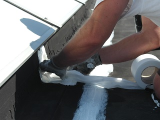 Controleer of er grotere naden of scheuren aanwezig zijn. Deze moeten worden voorbehandeld met Geotex. Breng een dunne laag Siliconen Dakbedekking aan en druk de Geotex in de natte substantie. Breng vervolgens nog een laag Siliconen Dakbedekking aan over het doek.